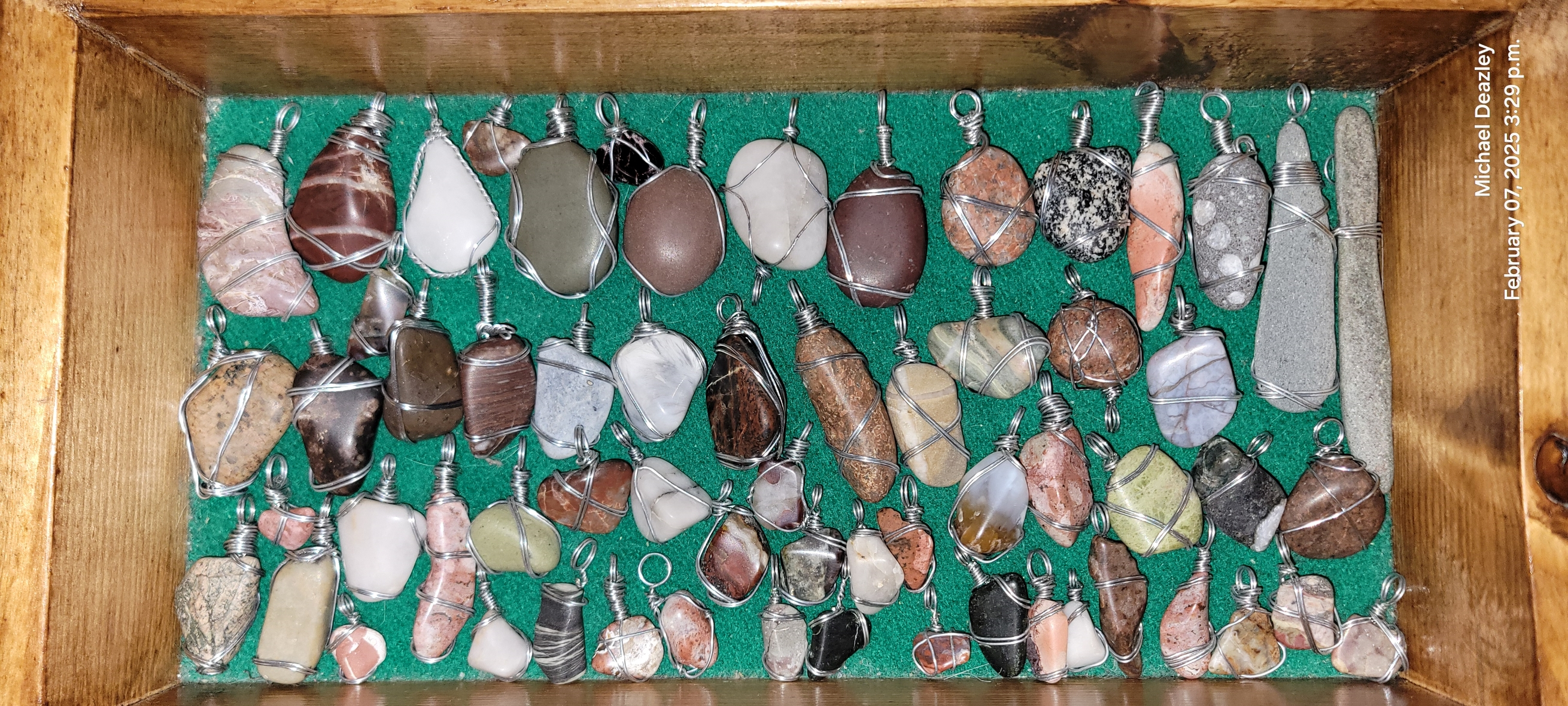 About two years ago, though, I saw a random YouTube video about turning a beach rock into jewelry. The rock looked like dozens I've brought home over the years, and the creator was from Nova Scotia, so I went looking to see if I still had one around. I didn't, but I had something much nicer. A rock I picked up working in a vineyard (I worked in five in that year or so, don't remember which it was) thinking it was a hunk of quartz with paint on it. It wasn't, though. It was a fragment of seam agate.